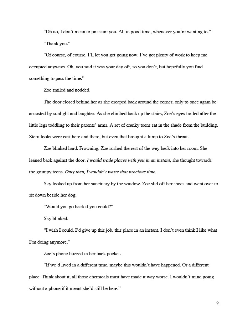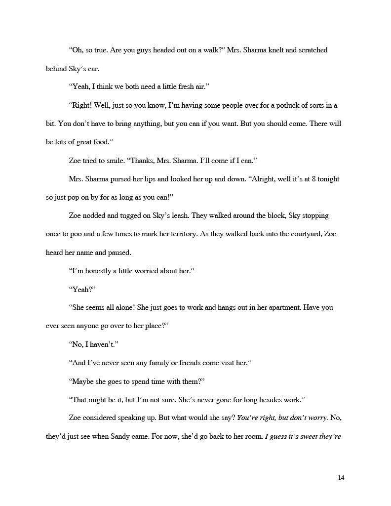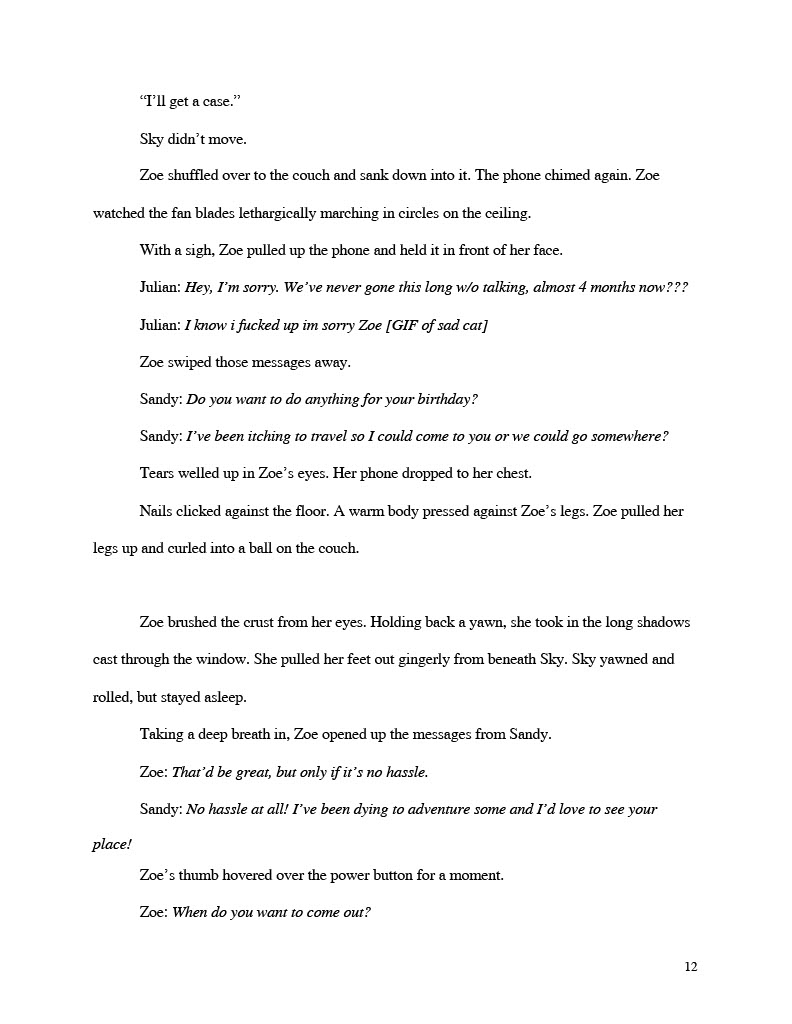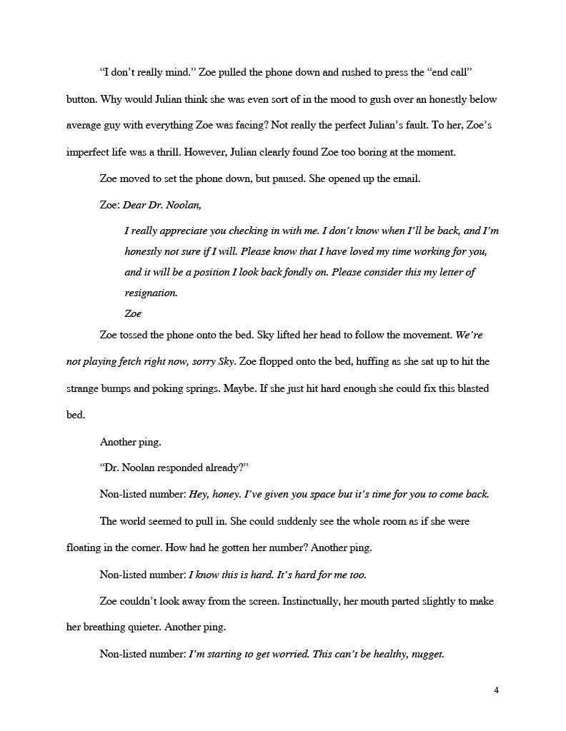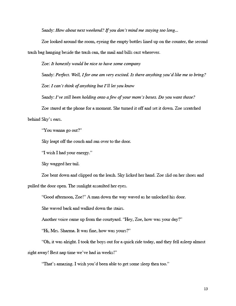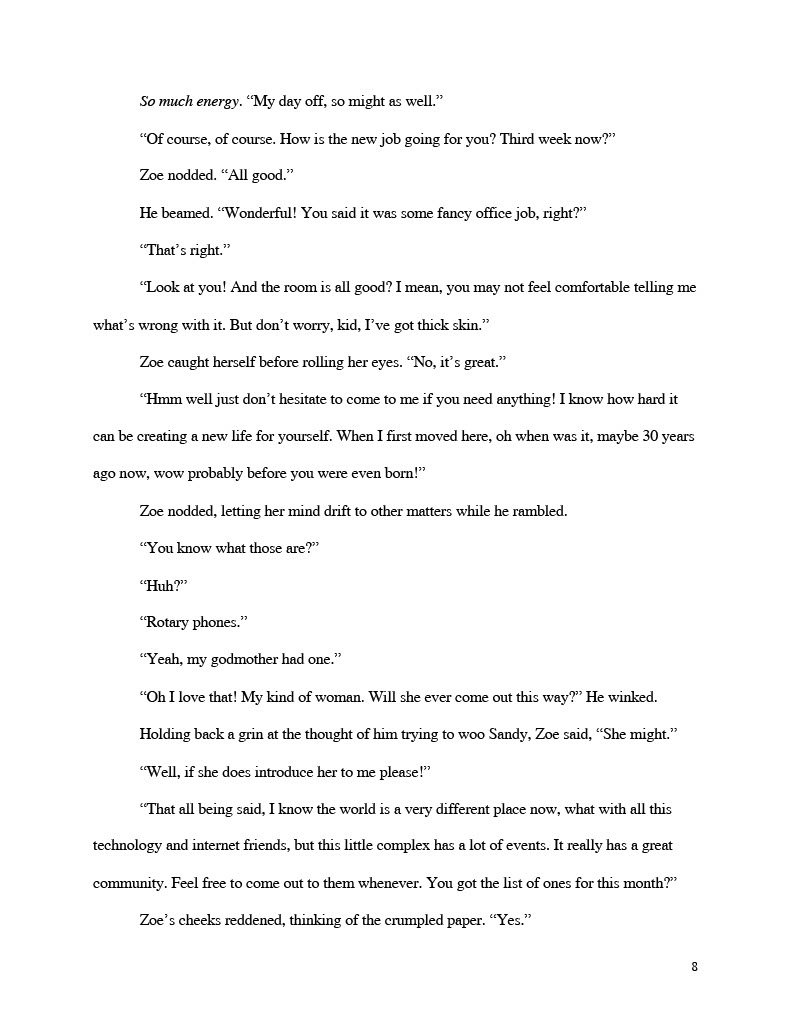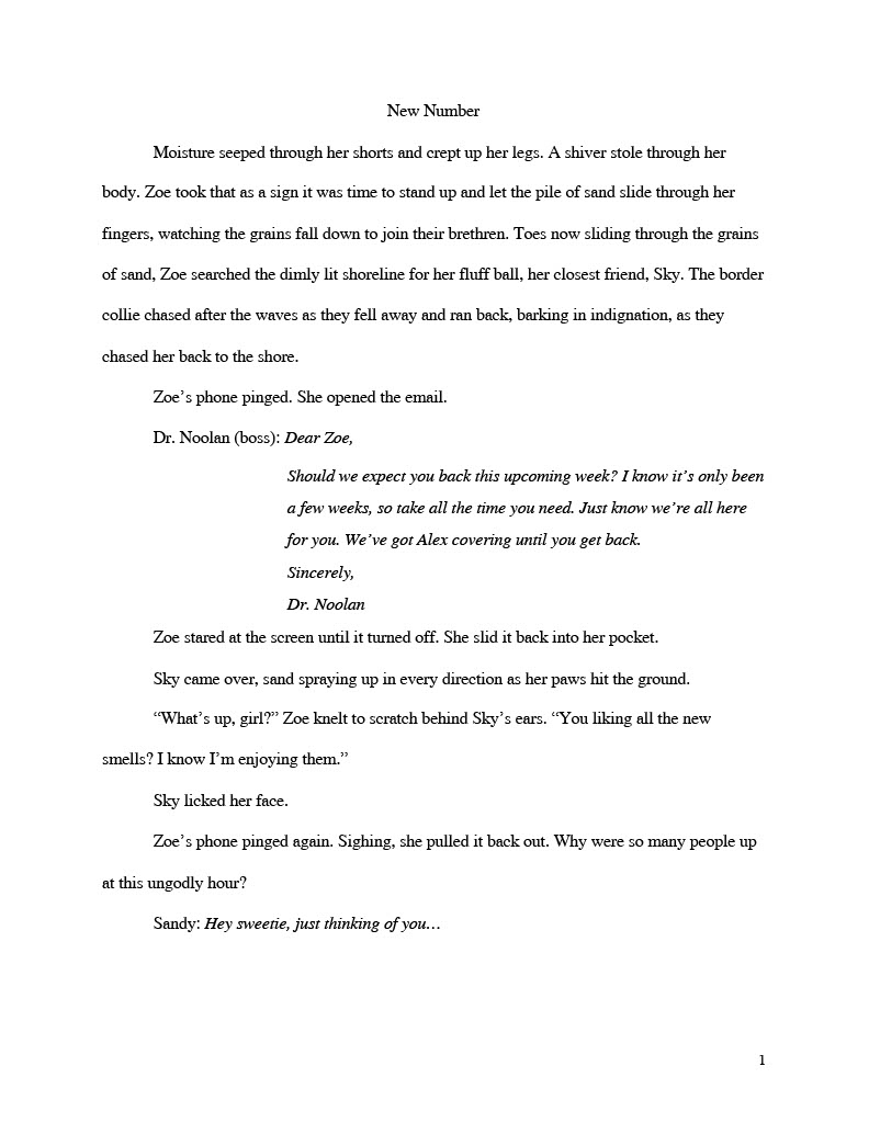 “New Number” is a story that follows the growth of a young woman, Zoe, as she works