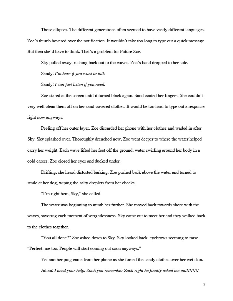This is a short story that I wrote in a fiction class. We read and analyzed stories throughout the year, and then wrote our own short story at the end.