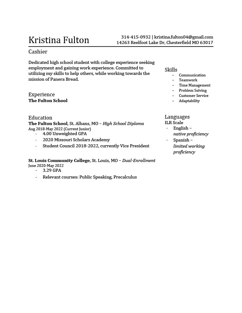 One of my favorite things to do is to help others!! I help my friends and family with their writing and editing whenever I can. I recently have been helping them create or revamp their resumes. Below, you can find a few examples!